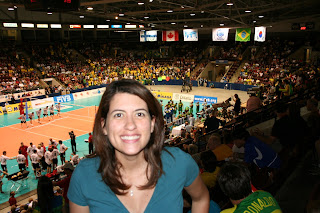 Fim de semana passado fomos a Toronto para o casamento de um amigo e aproveitamos para assistir o jogo de voley do Brasil contra o Canada la no Hershey Centre em Mississauga. Foi muito legal ver um montao de brasileiros torcendo, batucando e gritando... me senti em casa. Me fez lembrar meus tempos de colegial quando iamos la no ginasio do Ibirapuera torcer pela selecao do ouro de Barcelona. Eta epoca legal!